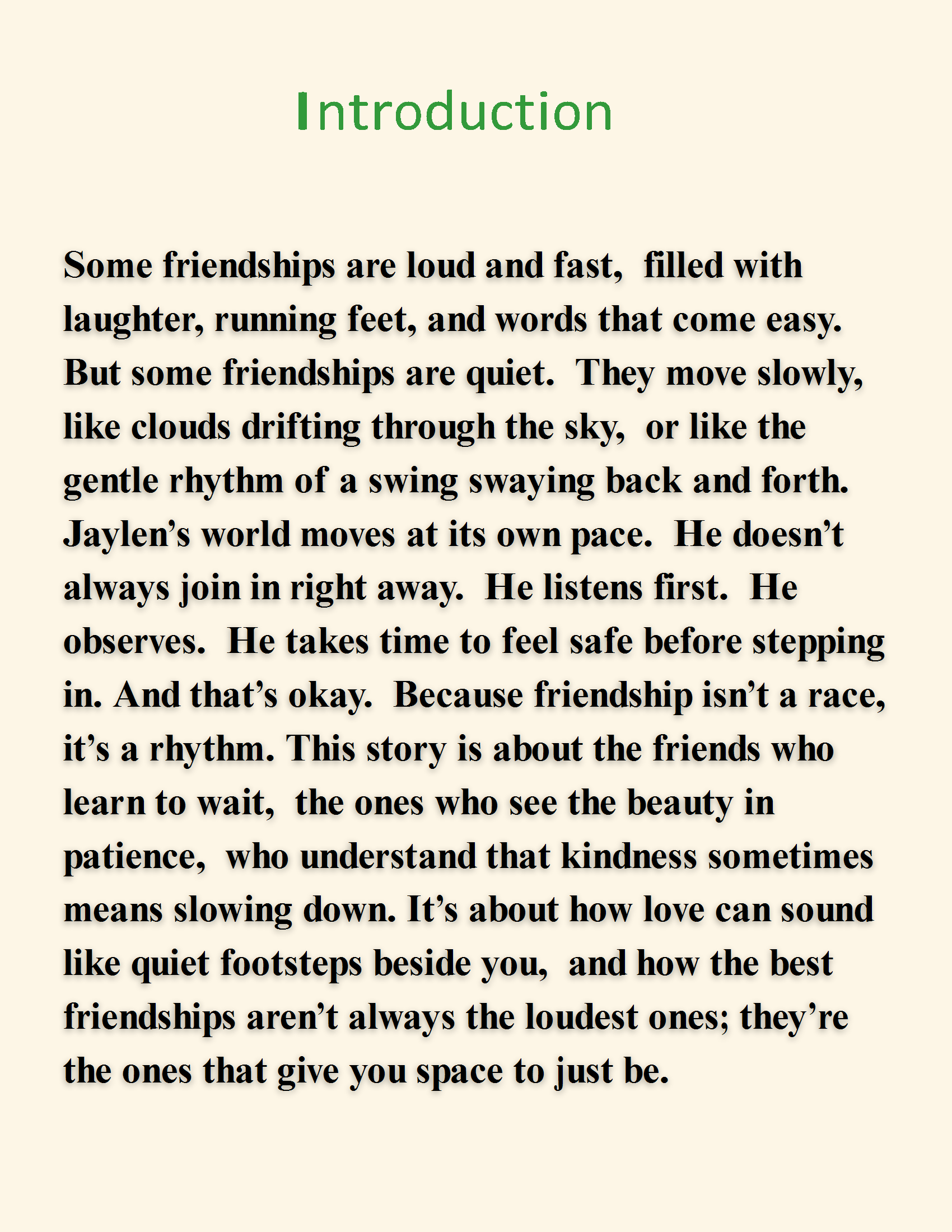 Some friendships are loud and fast, filled with laughter, running feet, and words that come easy. But some friendships are quiet. They move slowly, like clouds drifting through the sky,