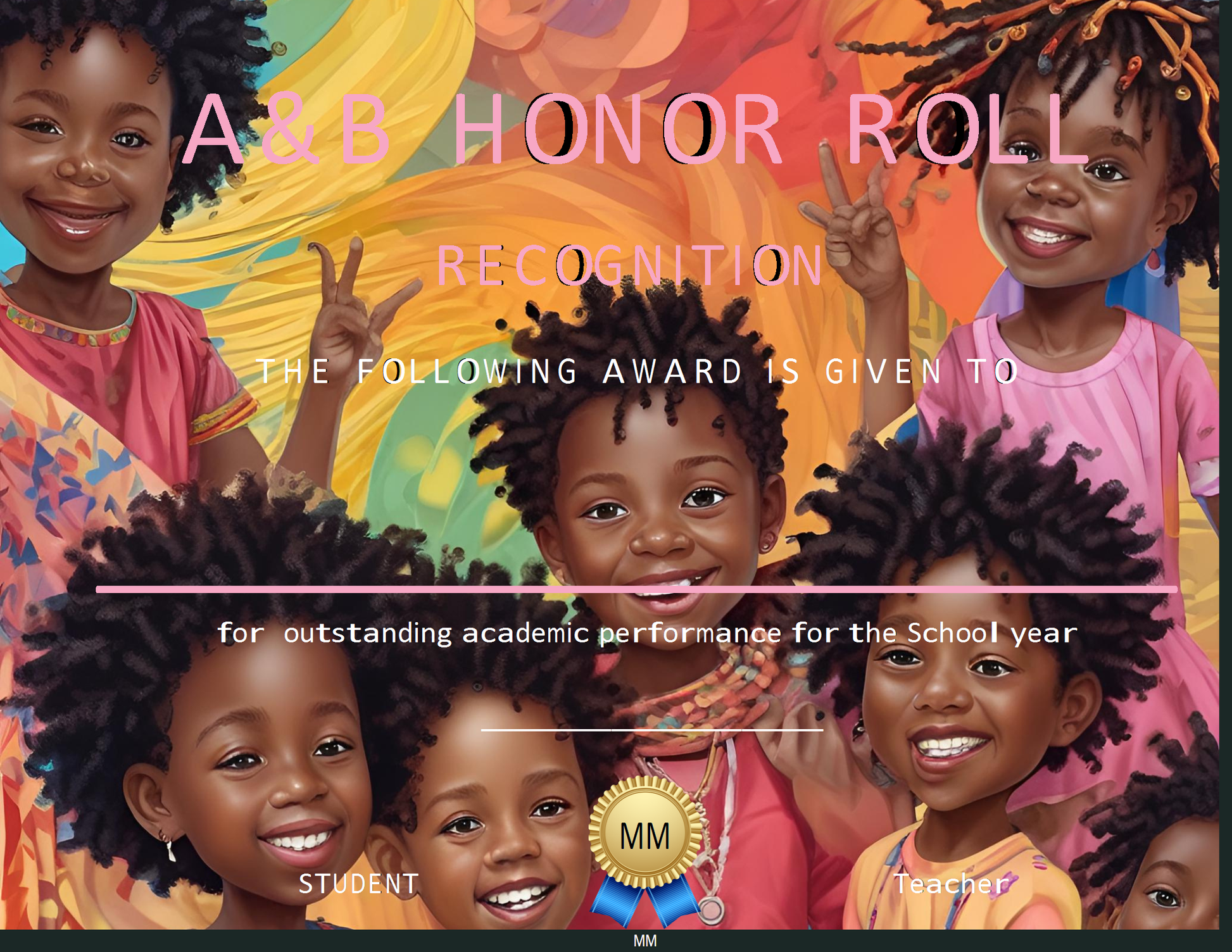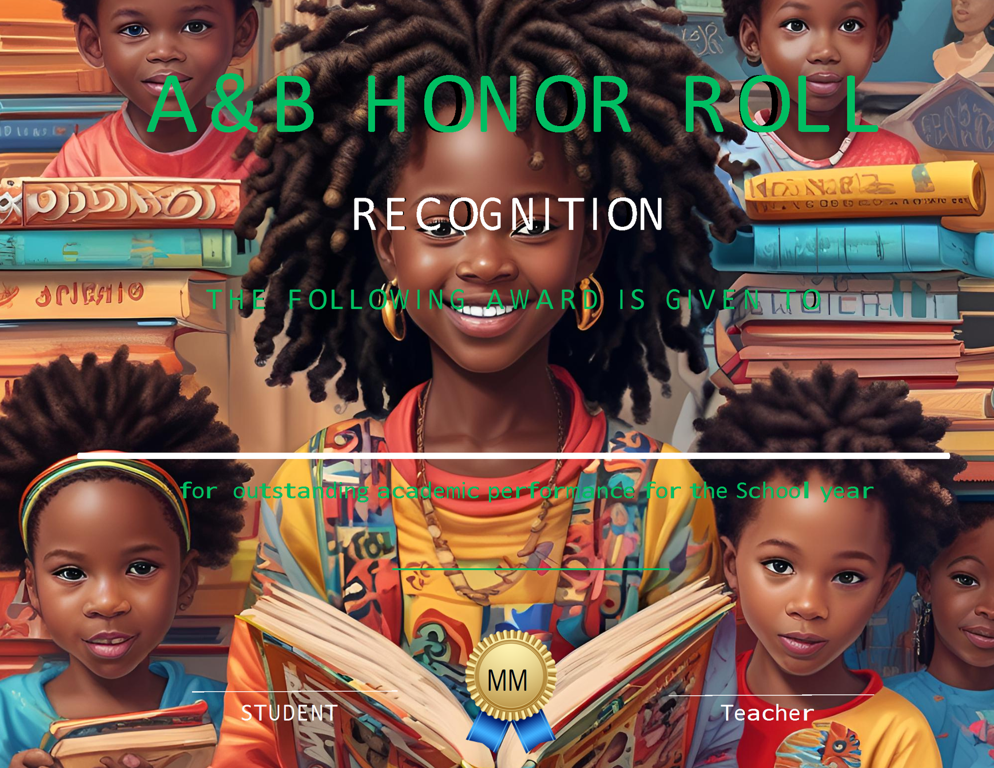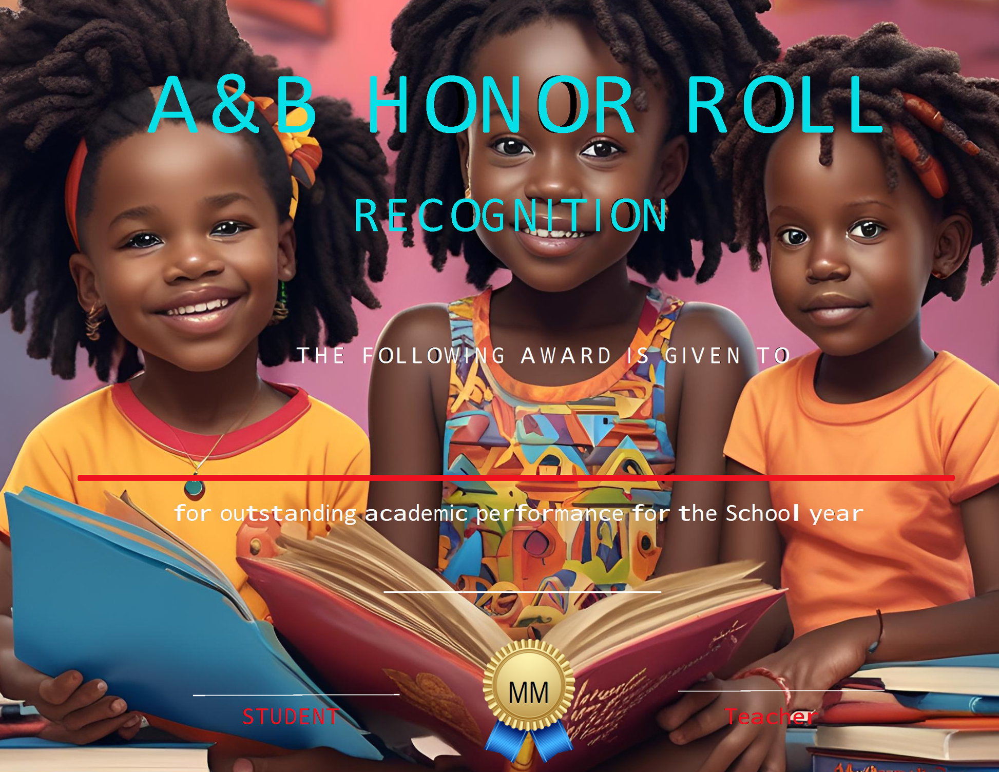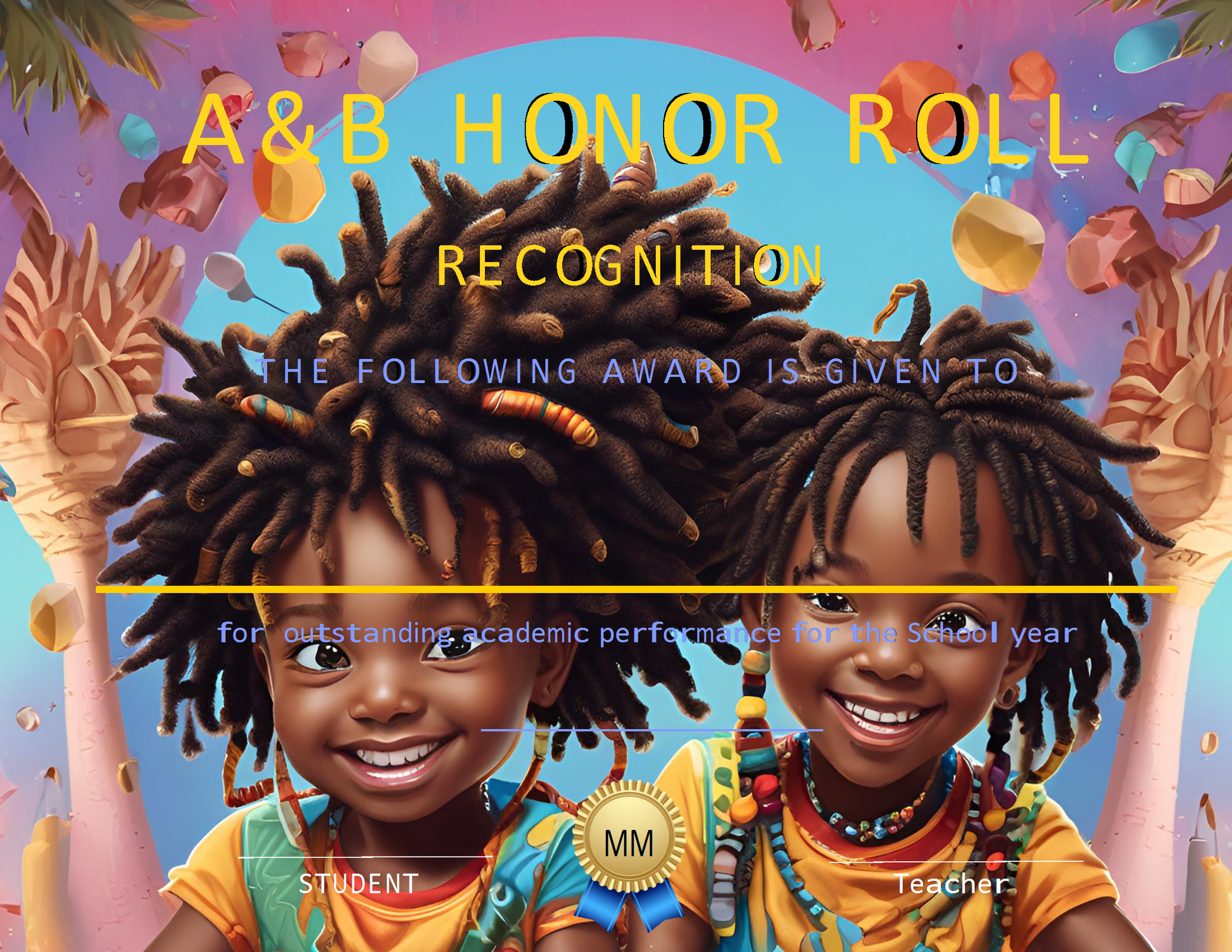 Perfect for teachers, schools, and homeschooling families, the AB Honor Roll Certificates encourage continued achievement while uplifting confidence and reinforcing the message: Your mind is powerful, your culture is beautiful, and your achievements are limitless.