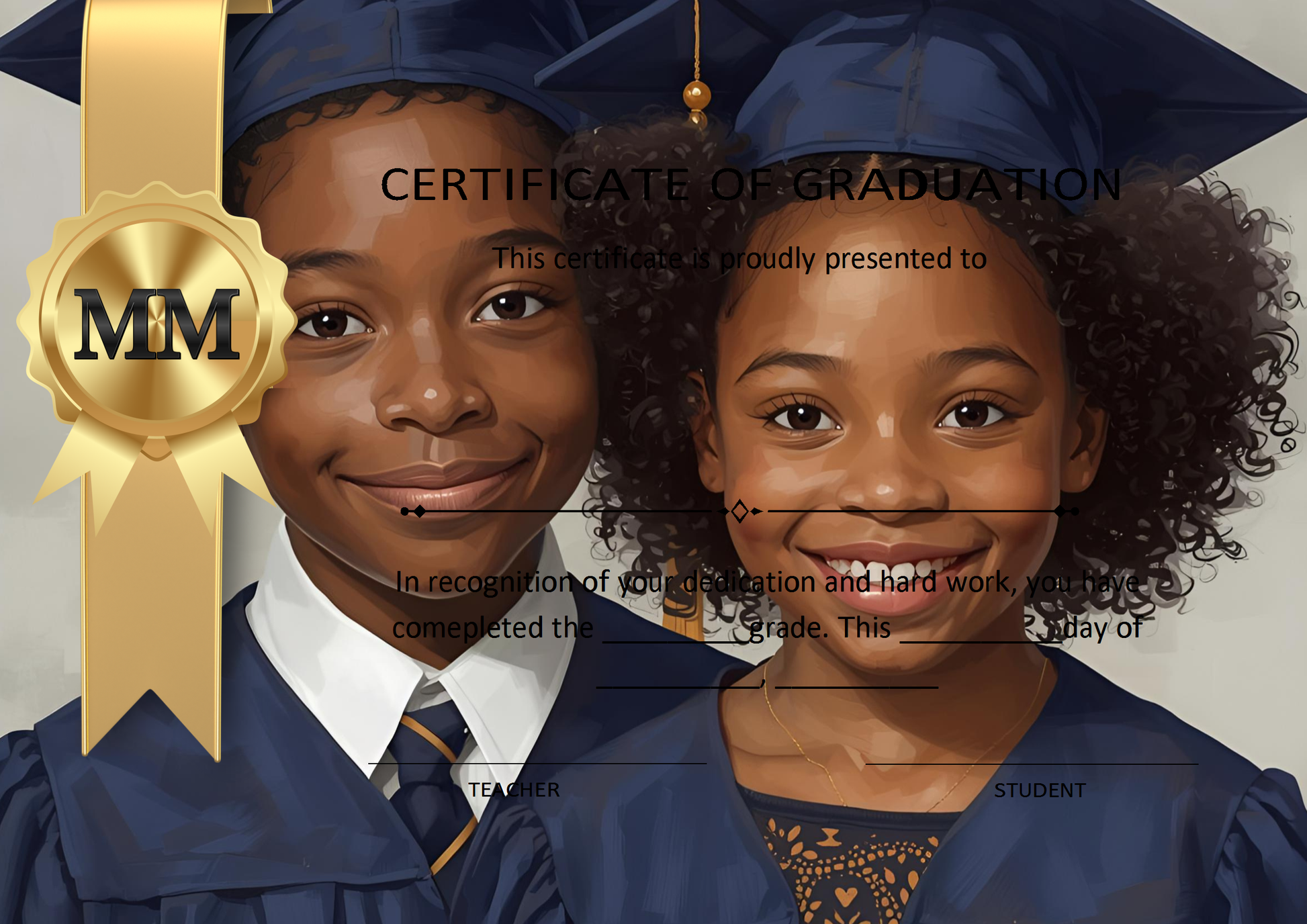 Celebrate achievement in style with the Melanated Minds Online Sophisticated Graduation Certificates. Each certificate is beautifully designed and embossed with the signature gold Melanated Minds seal, symbolizing excellence, cultural pride, and accomplishment.